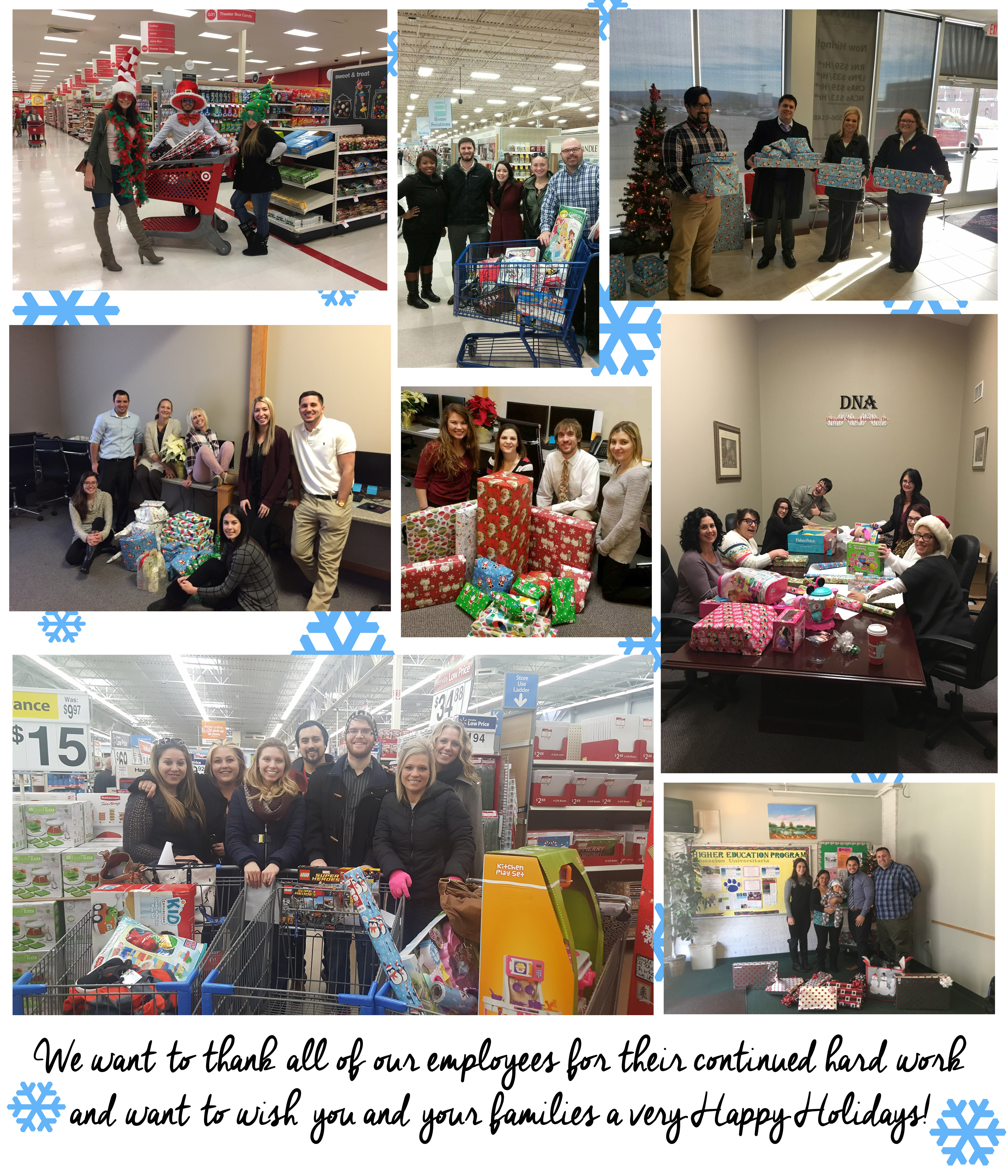 December 19, 2016 – Dedicated Nursing Associates, Inc. (DNA) partnered with several local charitable organizations to aid families in need during the holiday season. Each program allows volunteers to “adopt” a family in need and help provide holiday gifts and clothing for families who cannot afford it on their own. These programs take place in several communities and DNA adopted nine families from Pennsylvania and Ohio. Our employees enjoyed shopping for gifts for the families and wrapping them before taking the bundles to be delivered to the families. These local families were found through different charities such as the Batch Foundation, St. Vincent DePaul, Salvation Army, Centro Hispanico, Children’s Hospital of Columbus and more. We provided each family with new clothing, toys, items for the home and essentials for the holiday season.